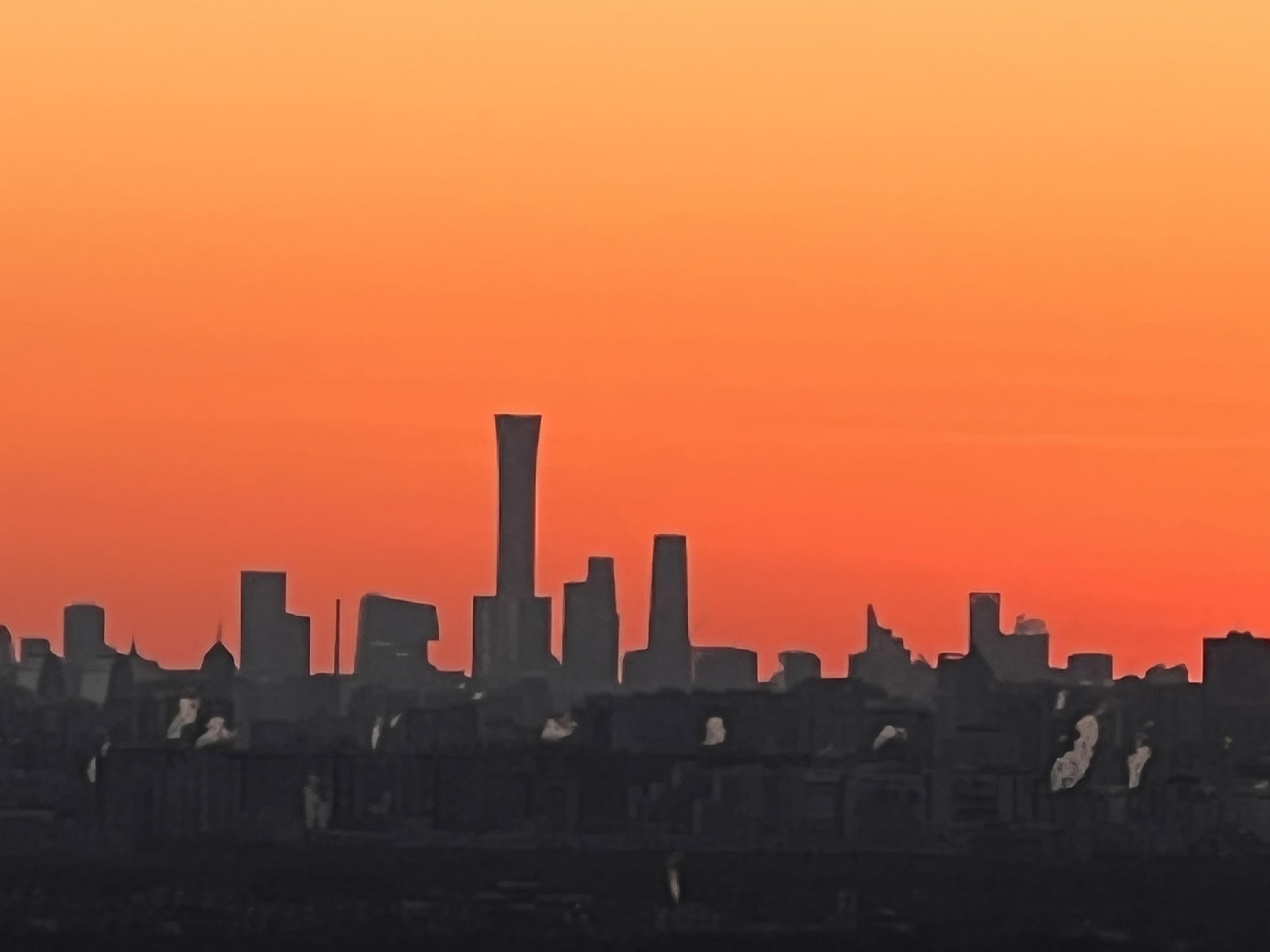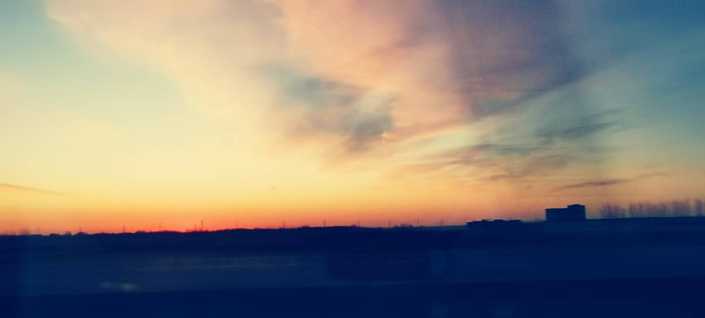 疾驰的列车,飞掠的窗景,模糊了相机的眼睛……依稀只有地平线上微微沁润的霞光。轨道尽头,庞大的城市正在苏醒,平行于铁轨的电线,分割了天空的红晕,留一份给远方,留一份给故乡……